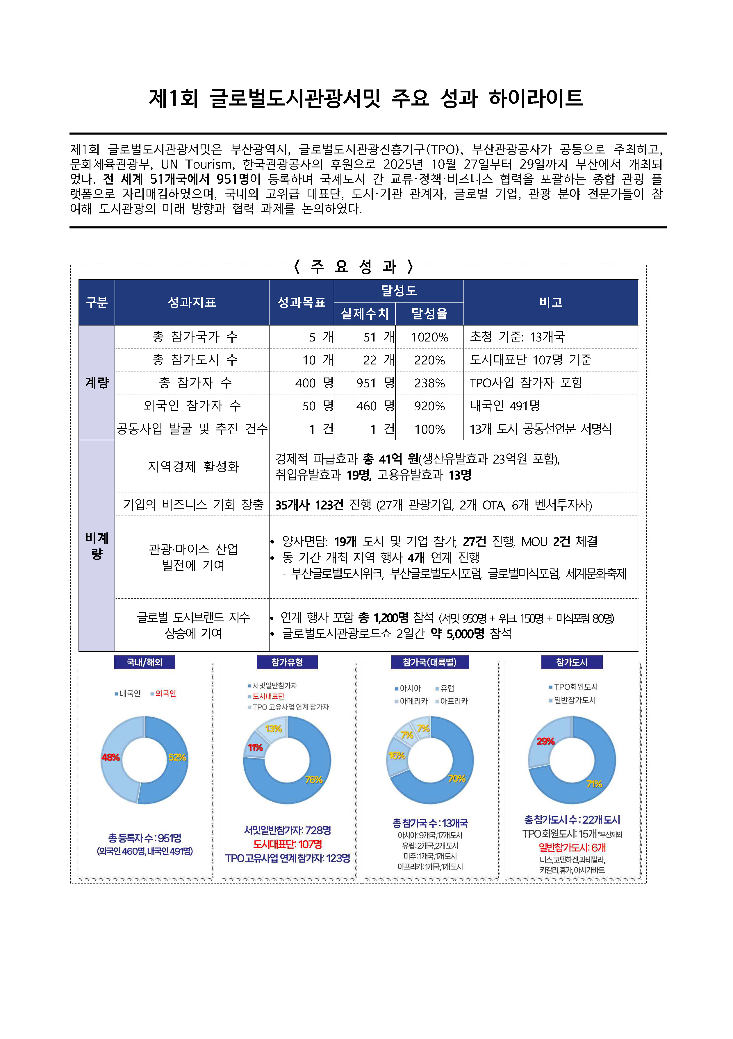 제1회 글로벌도시관광서밋 주요 성과